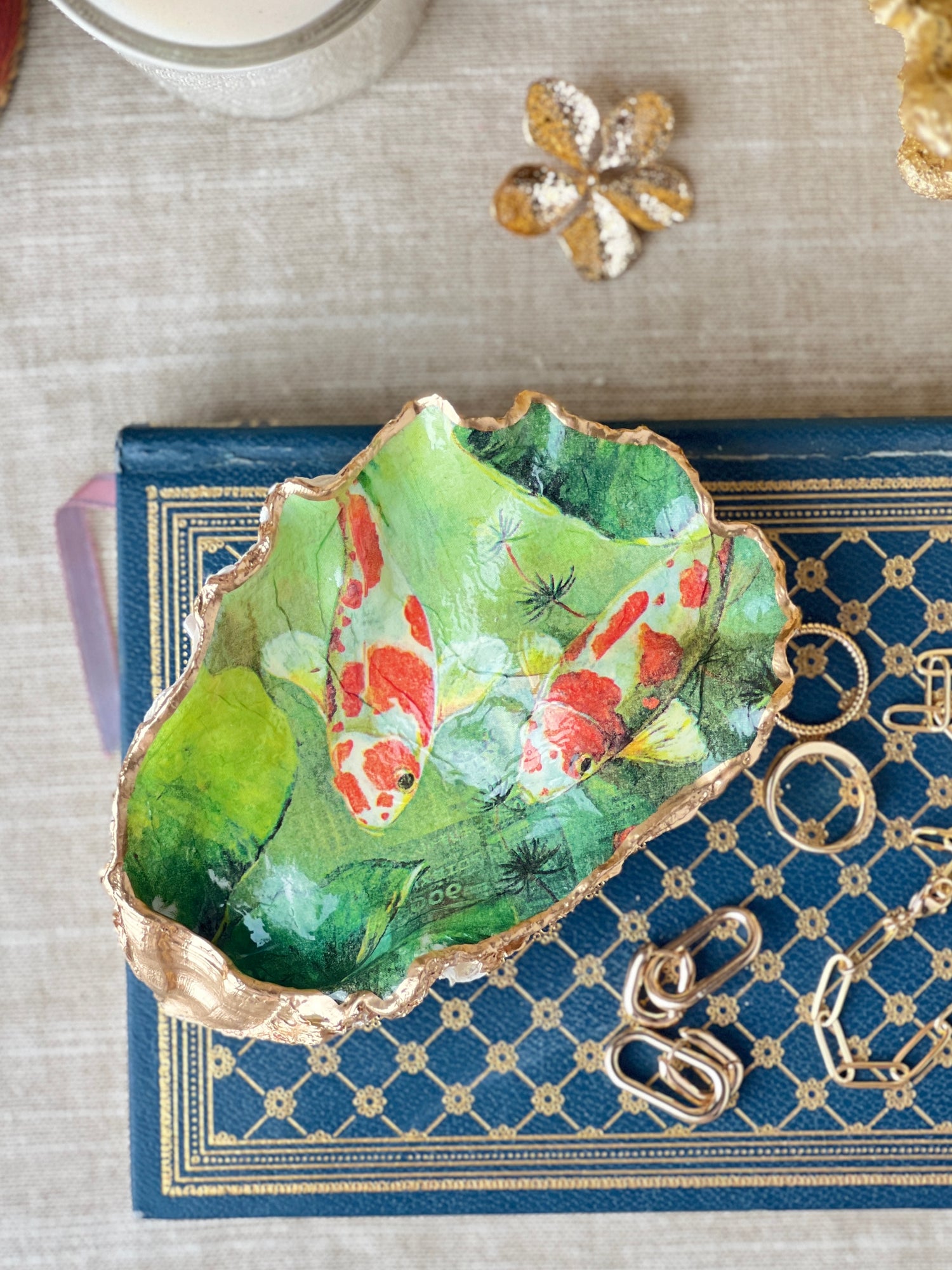 Catch all your jewels and baubles in our beautifully hand-decorated shells.