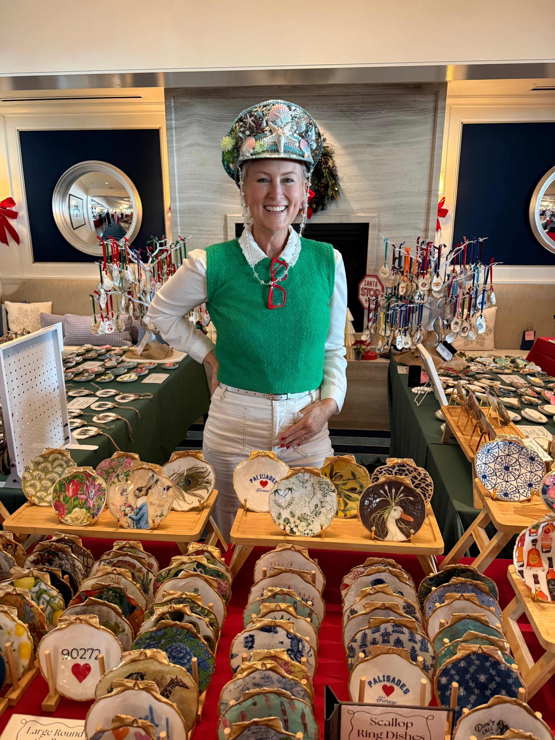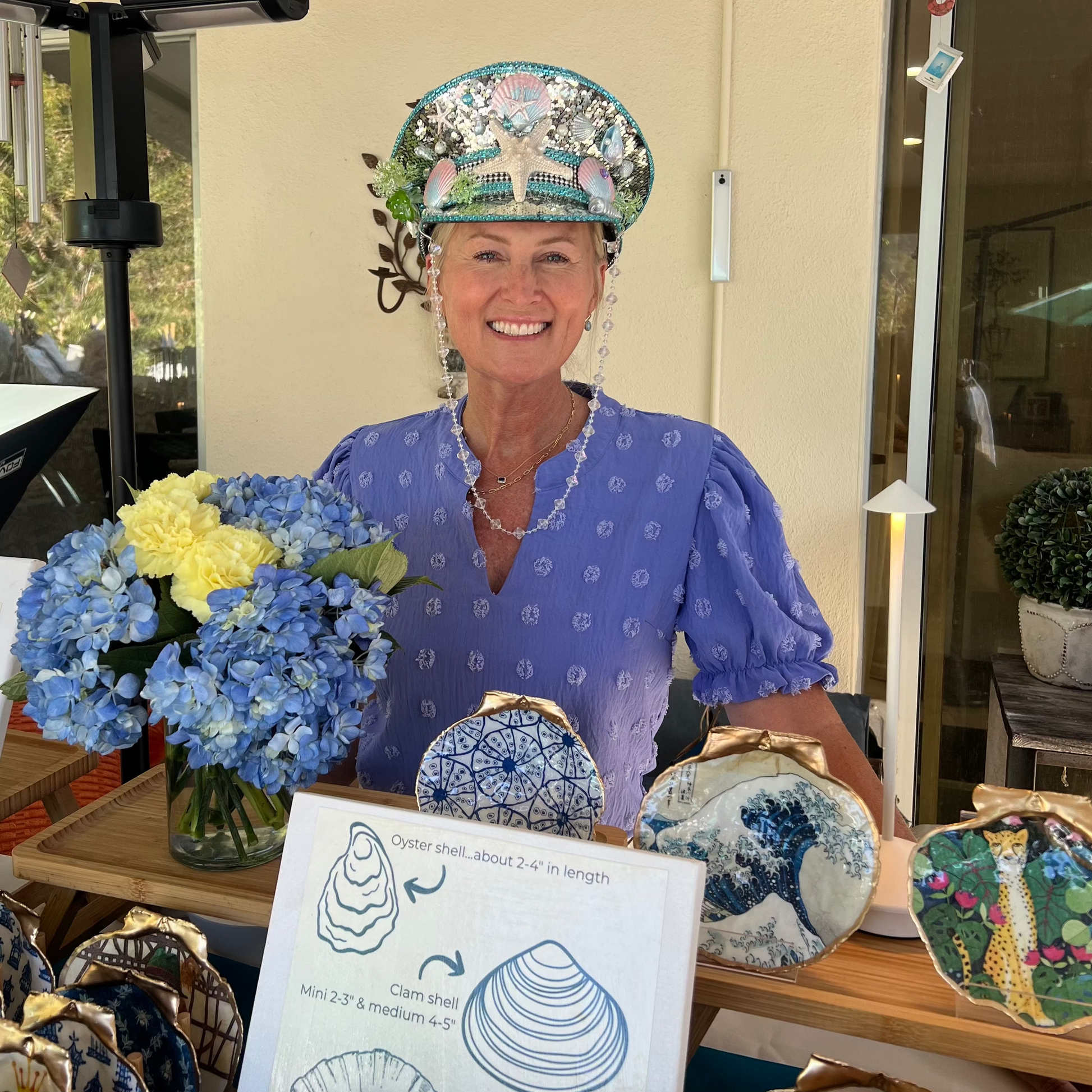 This vibrant Mermaid Parade Hat features shimmering teal sequins adorned with seashells, starfish, and seaweed details. Perfect for beach-themed events or parades, it’s a stunning accessory for anyone looking to make a splash.