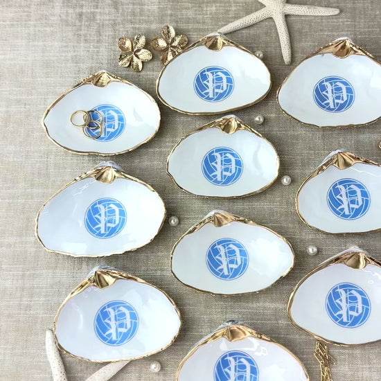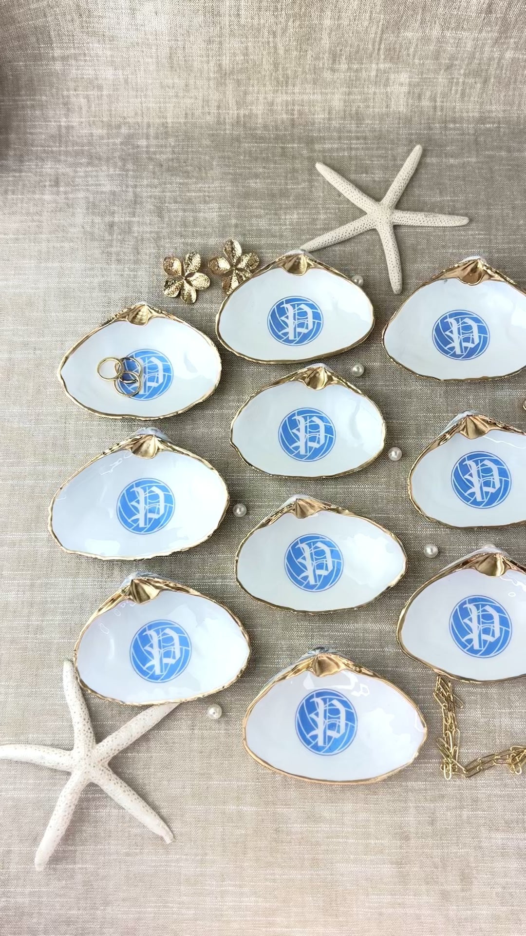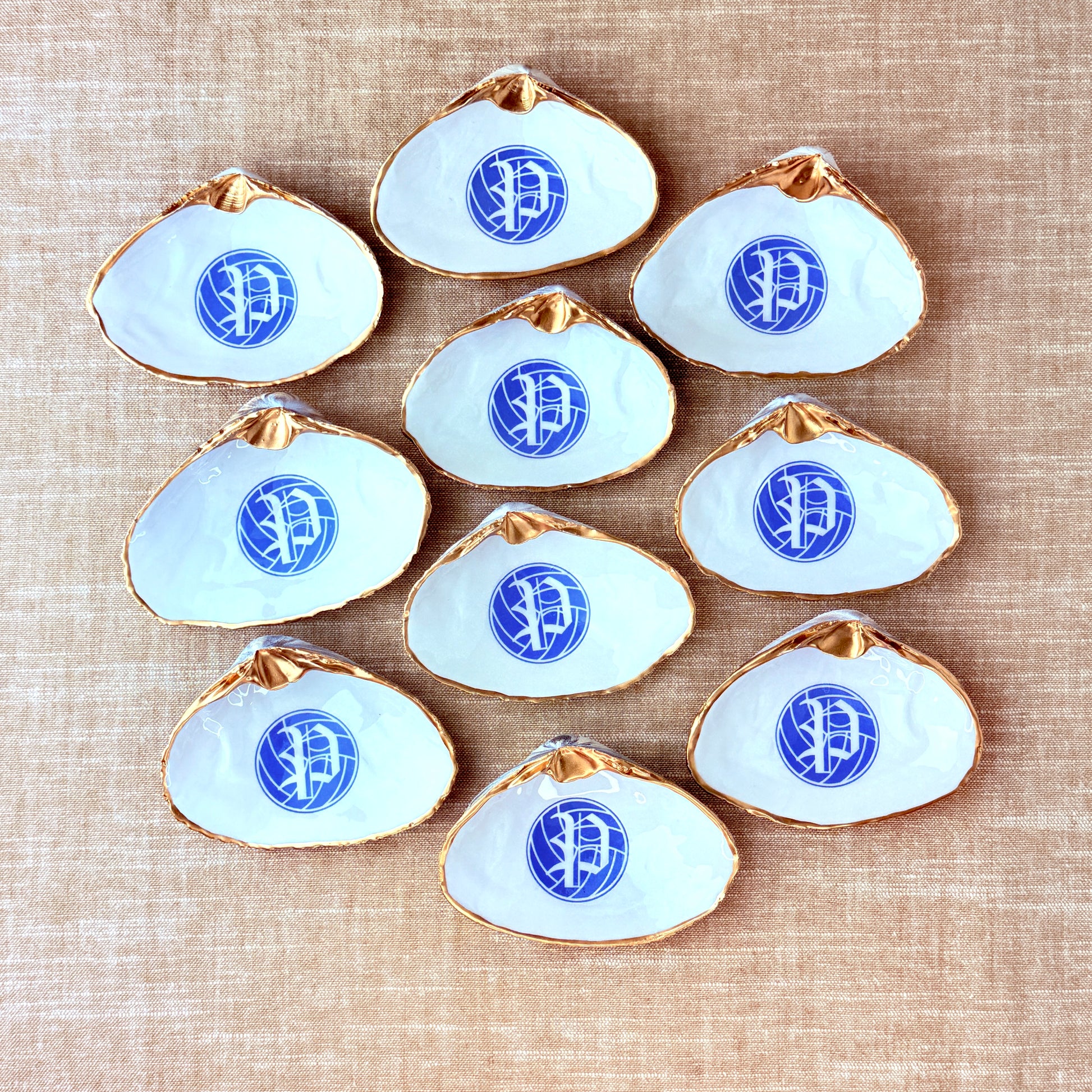 Medium clam shell ring dish with custom Palisades High School VB logo.