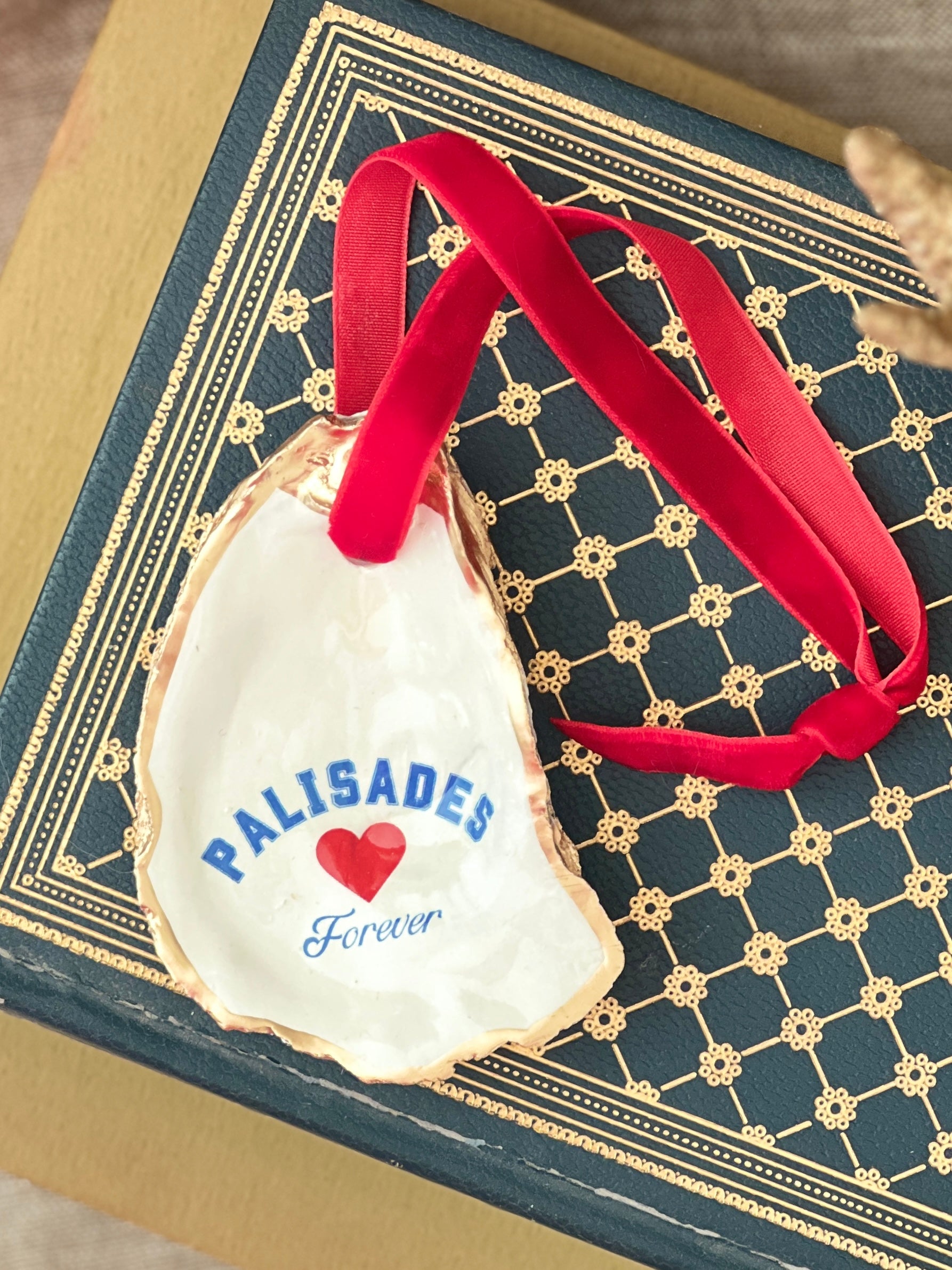 A lovely keepsake ornament with Palisades Forever and heart of our beloved Pacific Palisades town. This ornament was created as a keepsake. You pick between a red velvet or "Pali Blue" velvet hanging ribbon.